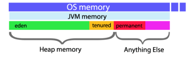 Apart from the Heap, JVM uses the RAM for the following which all together constitutes the “RES” output in “top” command.