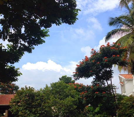 Everyday after lunch we go for a short walk outside our office. The picture shows the road with a clear blue sky after heavy rains on last few days in Bangalore.