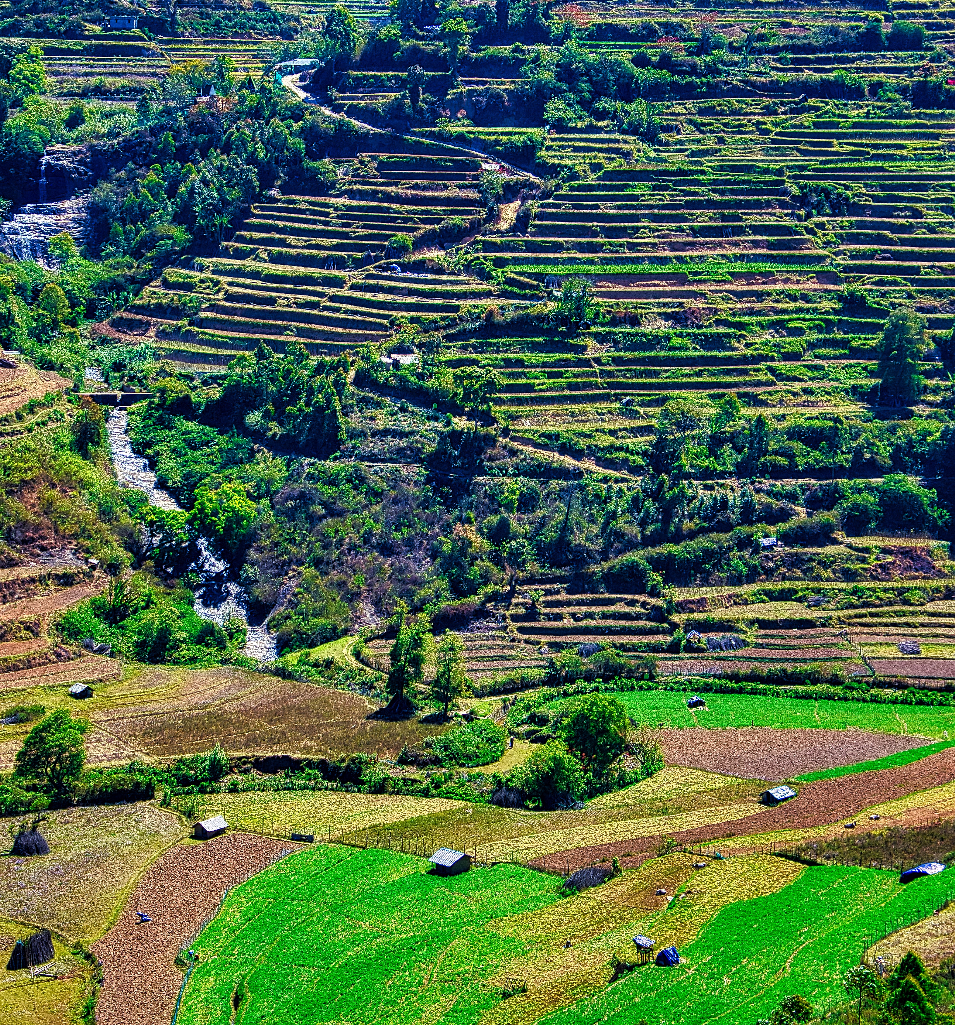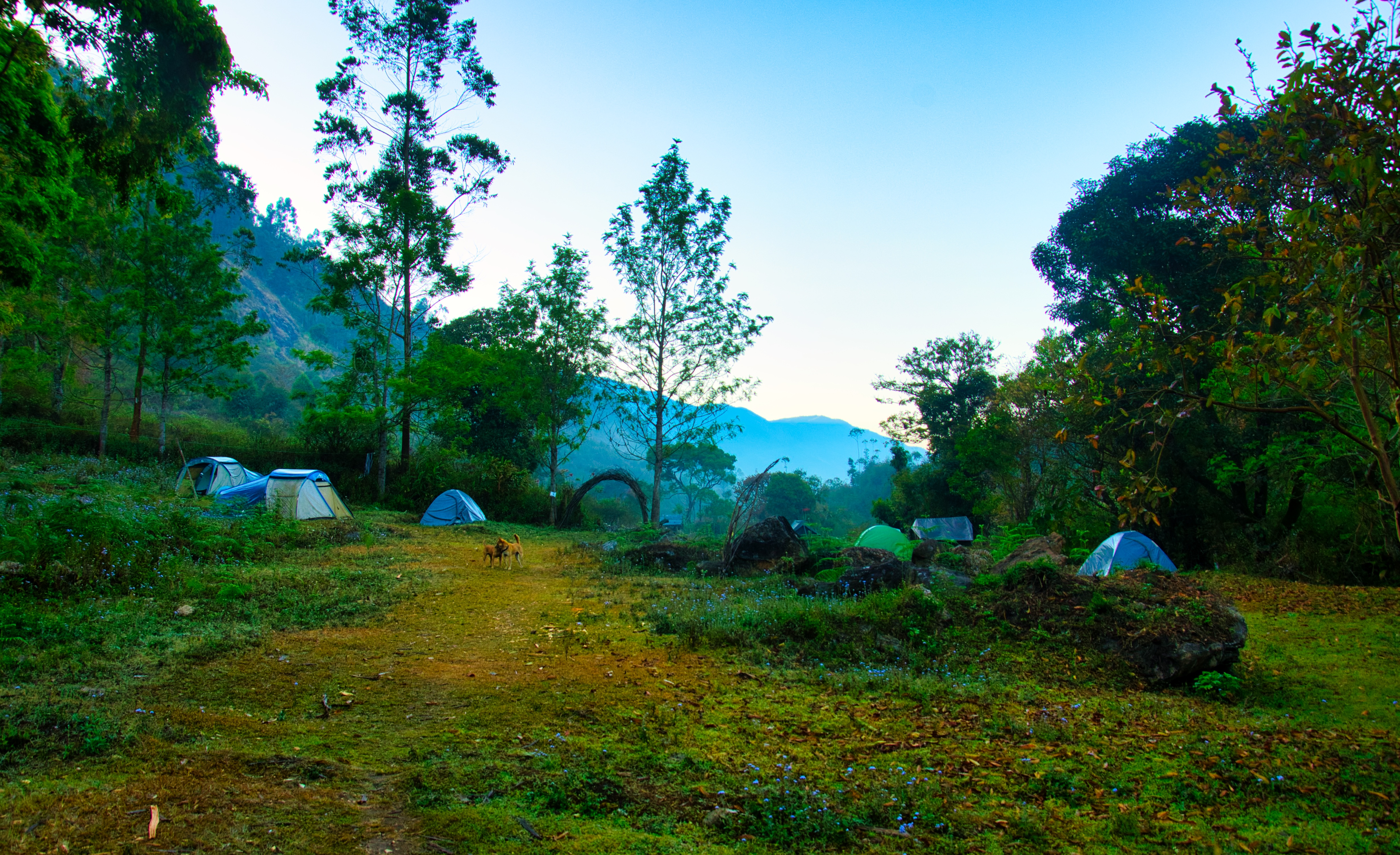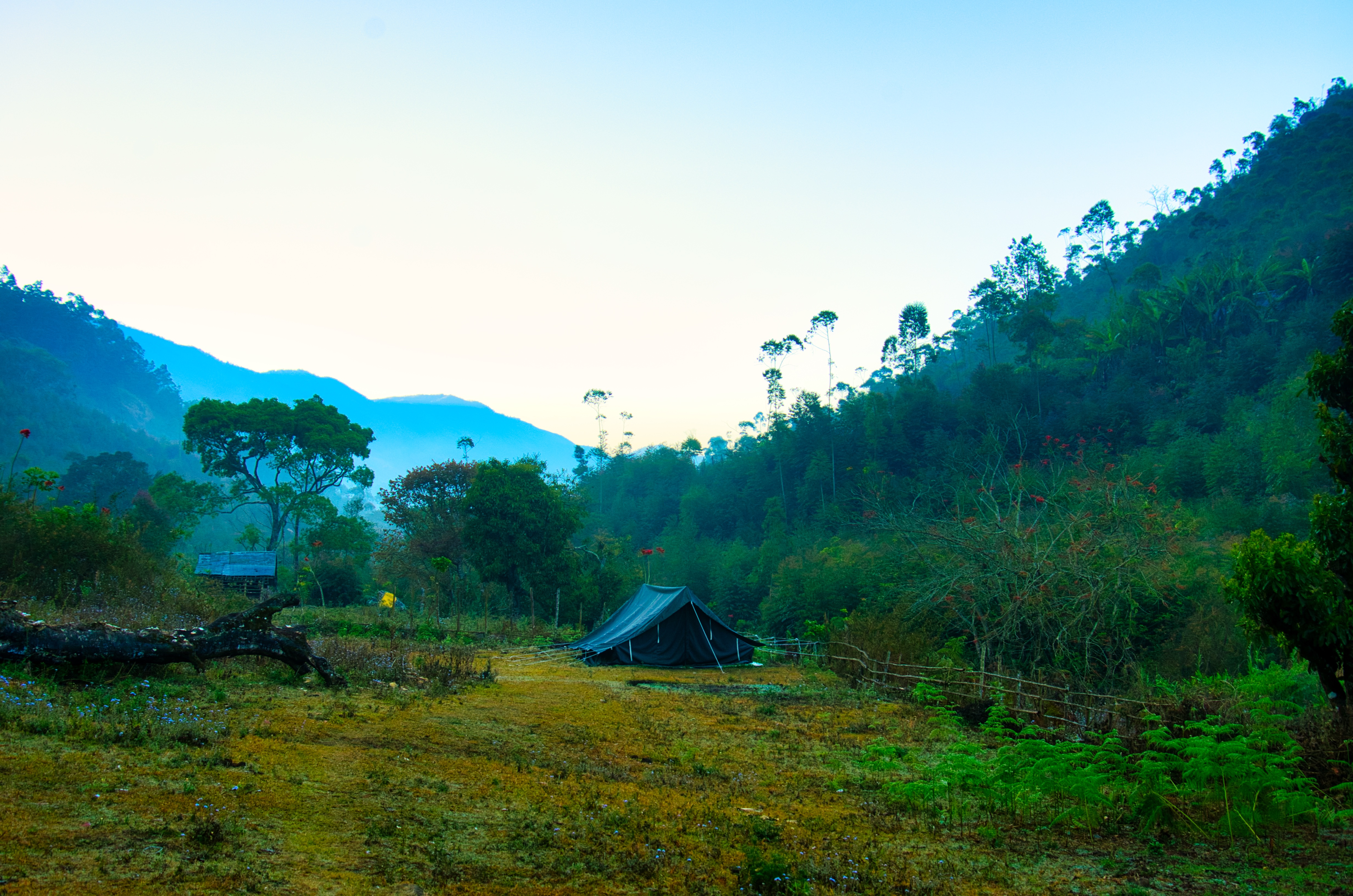 At Magic Valley, I parked my bike in a parking area near the road and walked almost 2 km down the hill to reach the property. They had tents to accommodate 30-40 people, but since it was a Sunday night, I was their only guest. I skipped the evening trekking as I was too tired with the long drive and the walk towards the valley. I chatted with the folks there and had freshly cooked dinner beside a campfire. It was my first stay in a tent, and it was freezing cold. I was shivering and really thought I would not survive the night. However, I put on multiple layers of clothes, a jacket, socks, gloves, and covered myself fully under a folded blanket to feel warm & survived.