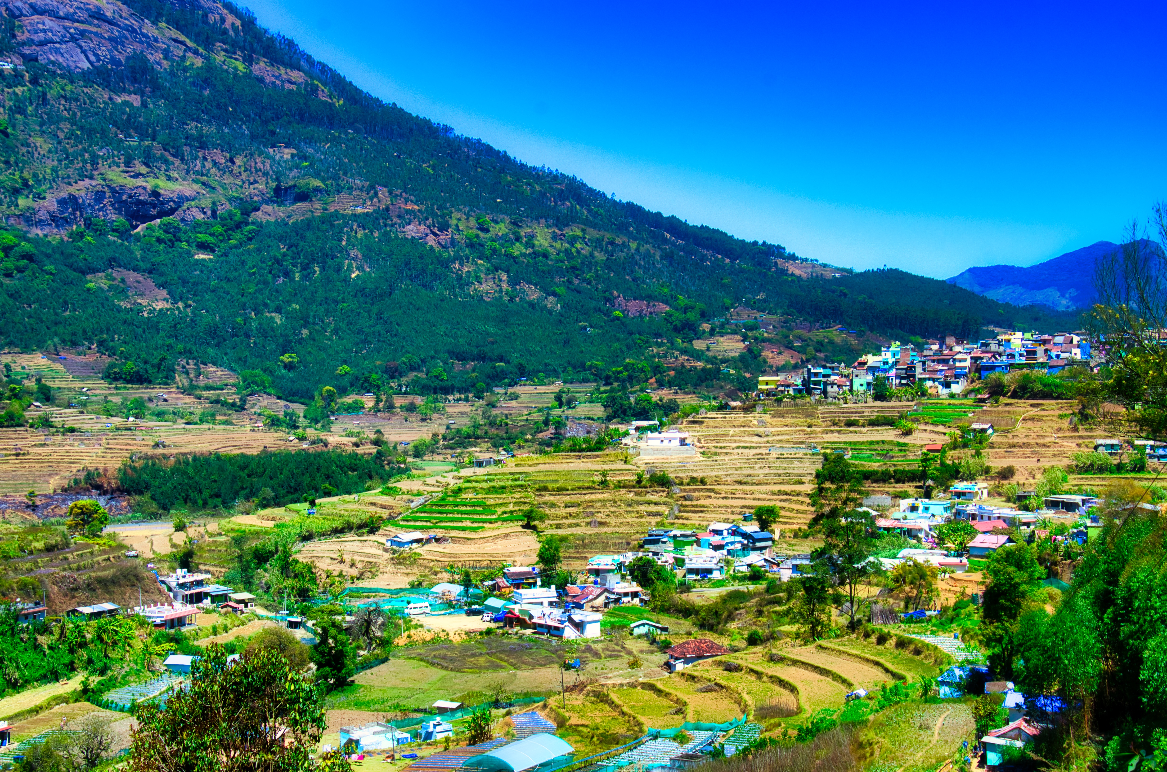 After having lunch in Munnar, I drove towards my final destination for the day – Magic Valley in Vattavada. I crossed the beautiful top station and a reserved forest on the way. Vattavada is the last village in Munnar beyond which it’s forest and then Tamil Nadu state. It is a dense place, with people doing agriculture like strawberry, beans, cabbage etc.