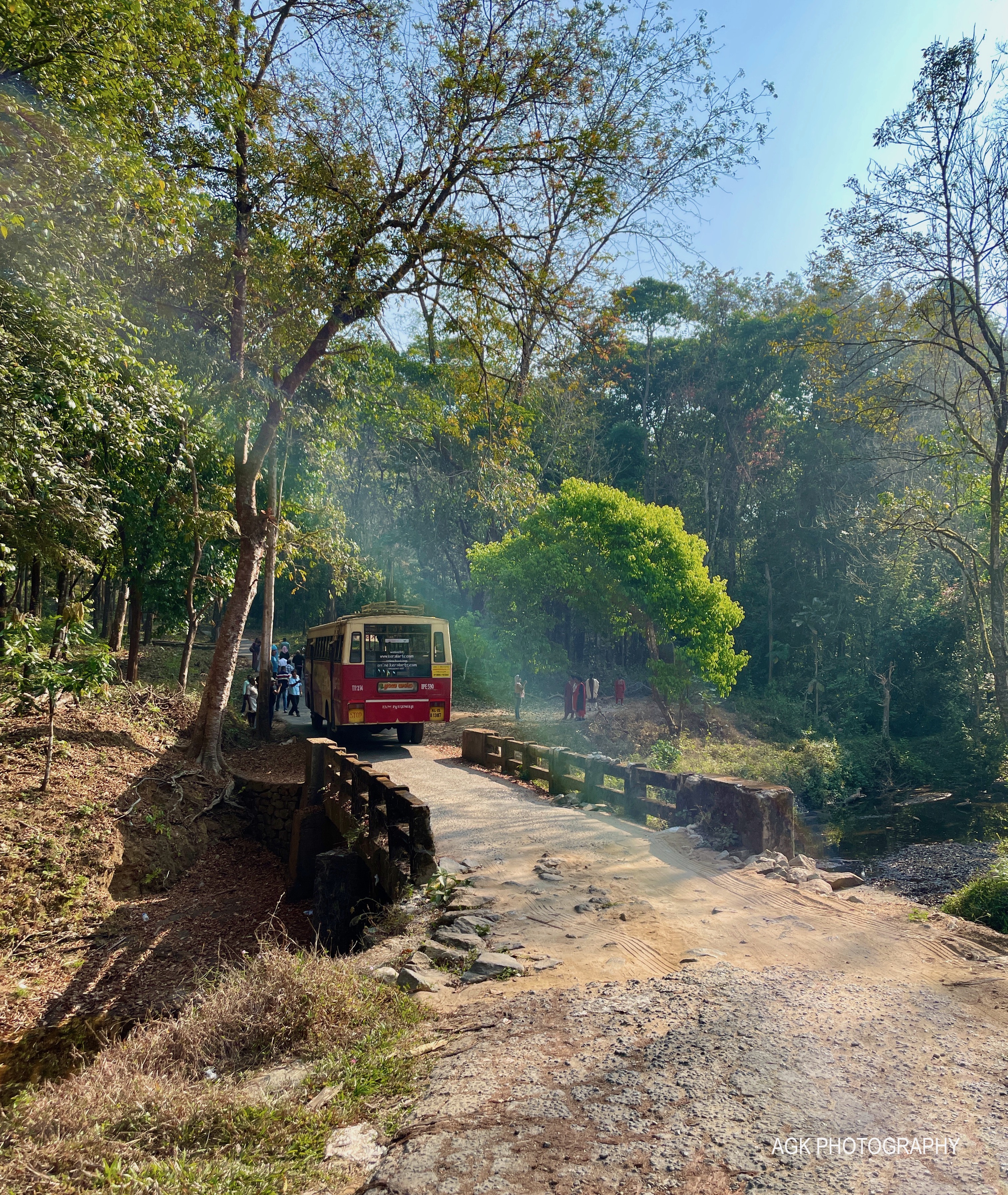 I saw a small bridge on the way and to my surprise, there was a state government bus crossing it. I was shocked to realize that it was a KSRTC bus route for tourists. I thought only a bike or an SUV could go through these roads. The bus was stopped for passengers to cross the bridge on foot for safety.