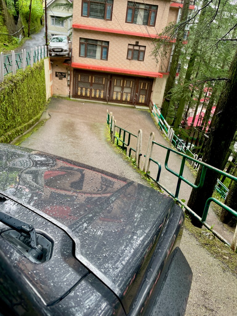 We stayed at Cedarwood Villa, which was about 4 km from Mall Road. The villa was situated down in the valley, and the drive there required significant effort. You couldn’t even call the turns “hairpin” bends; the road was literally like a staircase, with narrow lanes for one car only and 90-degree turns.